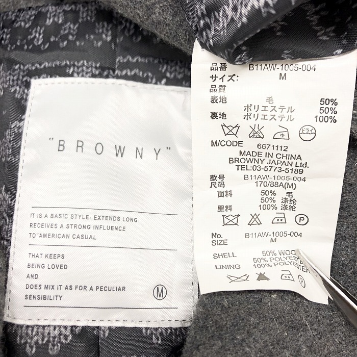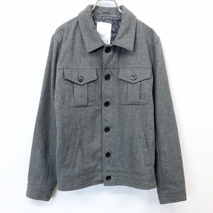 | 商品タイトル | WEGO BROWNY ブラウニー M メンズ 男性 メルトン ステンカラー ジャケット ボタン留め ボヘミアン柄裏地 長袖 毛×ポリ メランジ グレー |