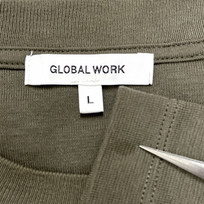 商品タイトル | GLOBAL WORK グローバルワーク L メンズ Tシャツ 一部鹿の子 切り替えし生地 無地 丸首 長袖 胸ポケット 綿100% ヘザーグリーンカーキ系 |