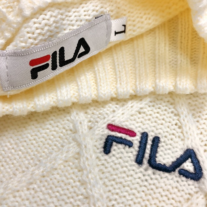 | 商品タイトル | FILA フィラ L メンズ 男性 ざっくり編み ニット セーター ダイヤ柄 ロゴ刺繍 モックネック 長袖 アクリル100% アイボリー 生成り色 |
