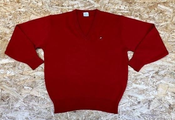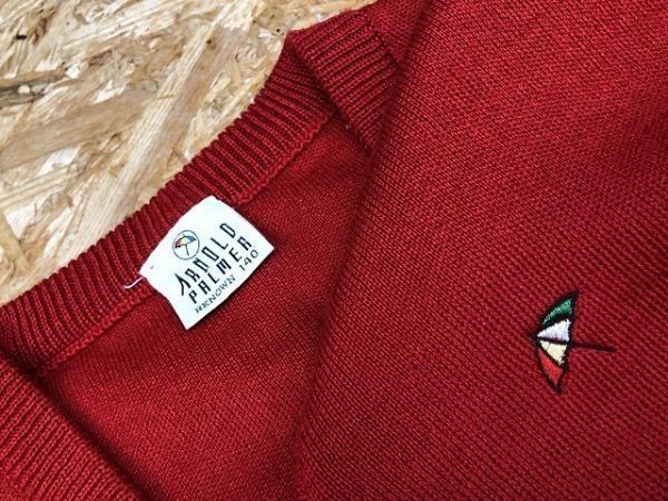商品タイトル | Arnold Palmer アーノルドパーマー サイズ140cm キッズ カットソー セーター 若干薄手 Vネック ロゴ刺繍 長袖 アクリル×ウール レッド 赤 |