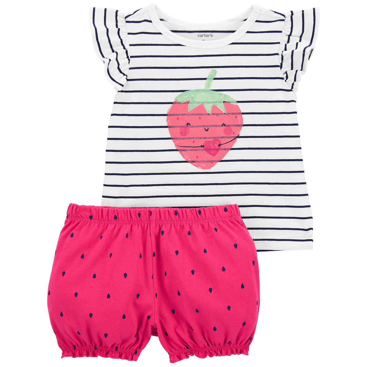 新品 24M ★ Carter's カーターズ ベビー 上下 4点 セット 90 2T ストロベリー セットアップ Tシャツ パンツ おむつカバー ガールズ ピンク