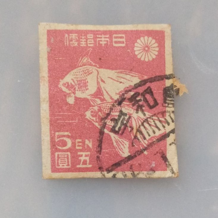 金魚 第1次新昭和 5円切手 宇和島 消印 使用済み 90番