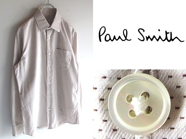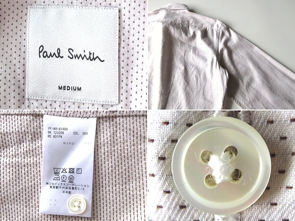 ネコポス対応 Paul Smith ポールスミス 2022SS 刺し子 ドット ジャガード コットン ドレスシャツ M ライトベージュ 日本製