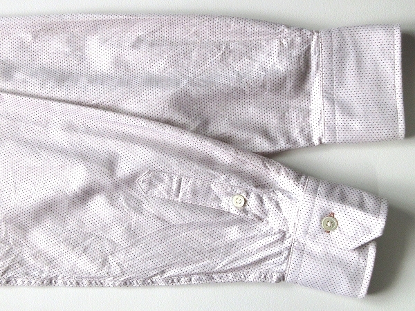 ポールスミスのドレスシャツ。刺し子でドット柄を表現したコットン生地を使用しております。左胸にポケット付き。カラーステッチになったトップボタンホールとカフスボタンホールがさりげないアクセントになります。上質な素材使いと綺麗なシルエットで、様々なコーディネートにお使い頂ける一着です。