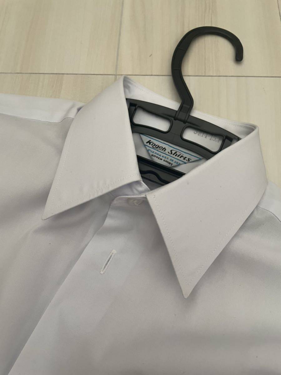以下お読みいただき、入札お待ちしています。半袖スクールシャツ です。一度着用し、クリーニング保管していたものです。サイズ:襟ぐり 34(14-15才)<平置き実寸サイズ>身幅 約46㎝着丈 約63㎝※素人採寸です。ポリエステル 65%・綿35%