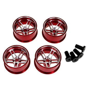 ▲ミニ四駆デュアル5スポーク大径アルミホイル【レッド】MINI4-W006V2-RE(ゆうパケット)
