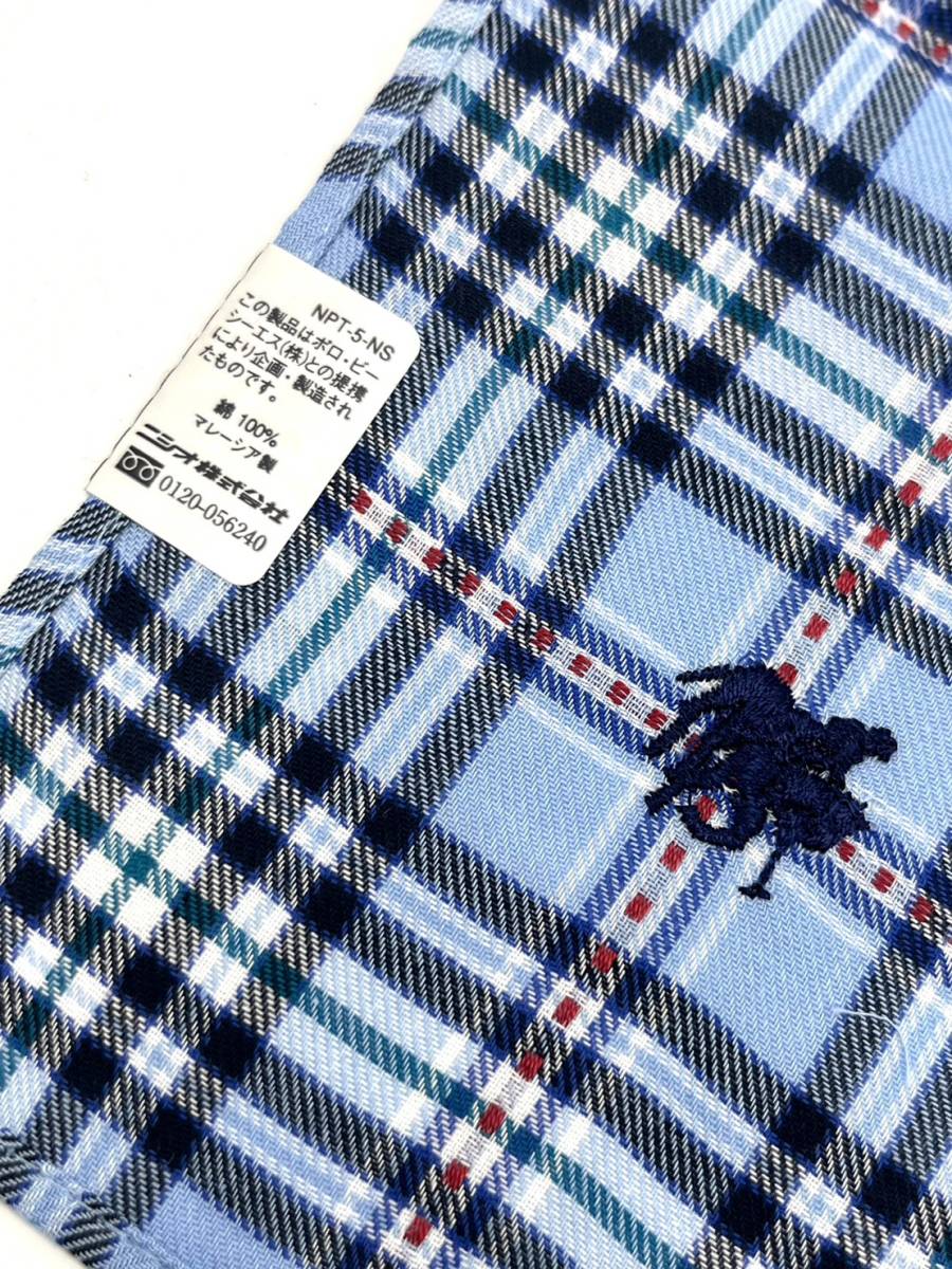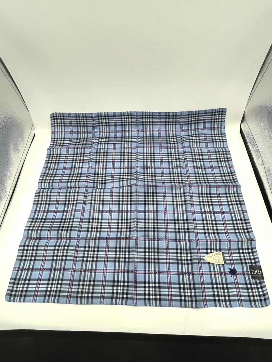 【シール付き未使用品】POLO BRITISH COUNTRY SPIRIT (ポロ・ビーシーエス)ハンカチ スカーフ バンダナ チェック ライトブルー系