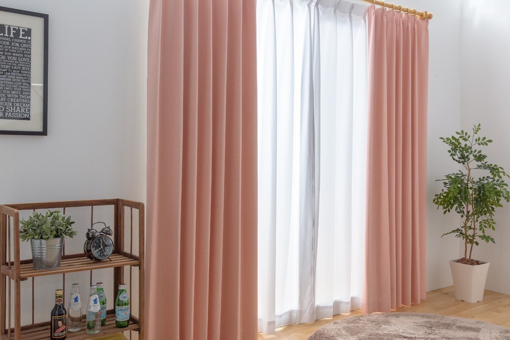カーテン 幅200cm×丈100cm1枚 ピンク 完全遮光 遮光1級 省エネ 遮音 遮熱 断熱 保温 日本製 形状記憶加工付 246サイズ展開