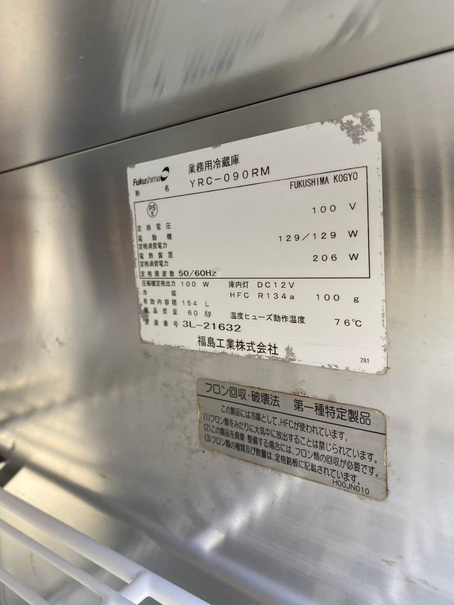 な716-5 フクシマ/冷蔵庫/コールドテーブル/YRC-090RM/単相100V W900×D600×H800 飲食店/厨房/店舗/業務用 | |||||||||||