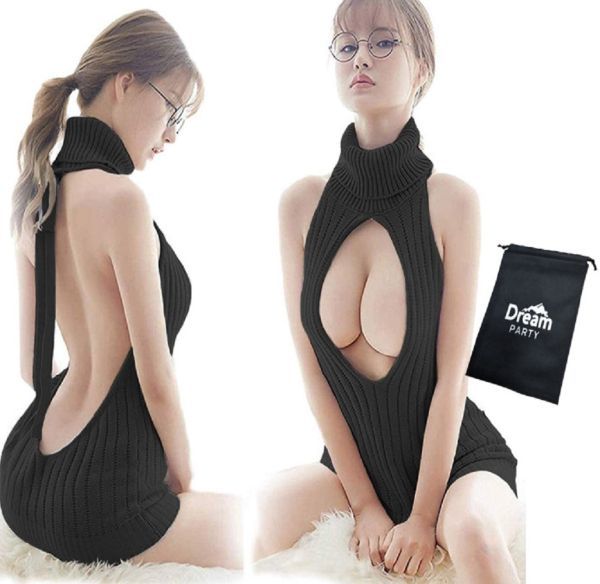 童貞を殺すセーター ニット ブラック タートルネック コスプレ レディース 女性 可愛い プレゼント ノースリーブ ニットワンピース dp605