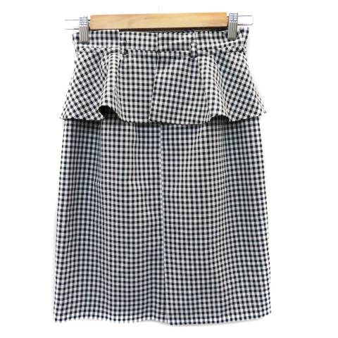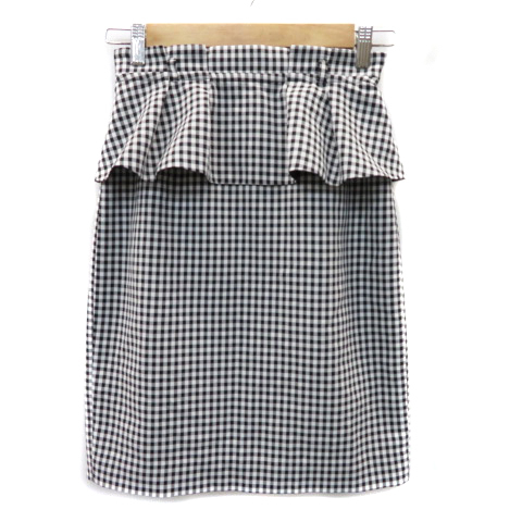 ジャスグリッティー JUSGLITTY タイトスカート ペプラムスカート ひざ丈 スリット 2way ギンガムチェック柄 0 黒 ブラック /YK1 レディース
