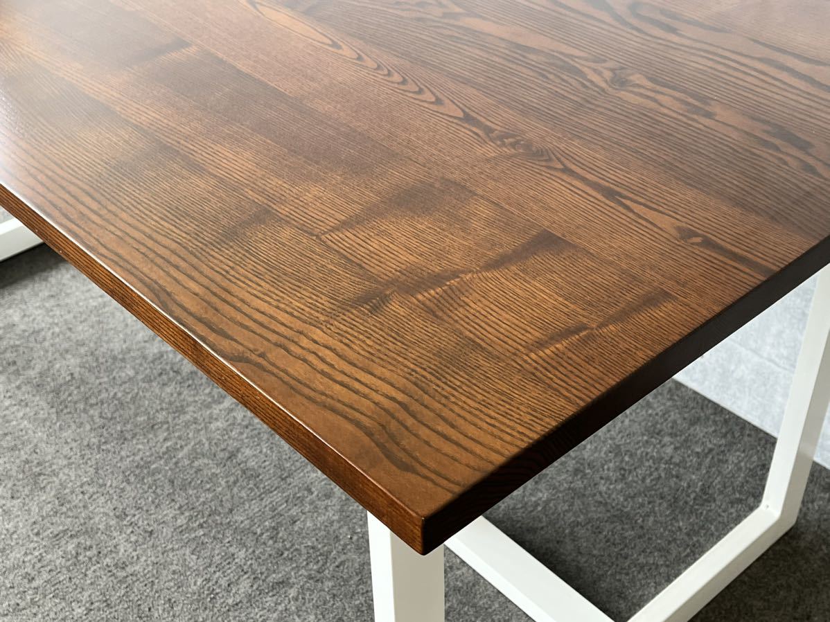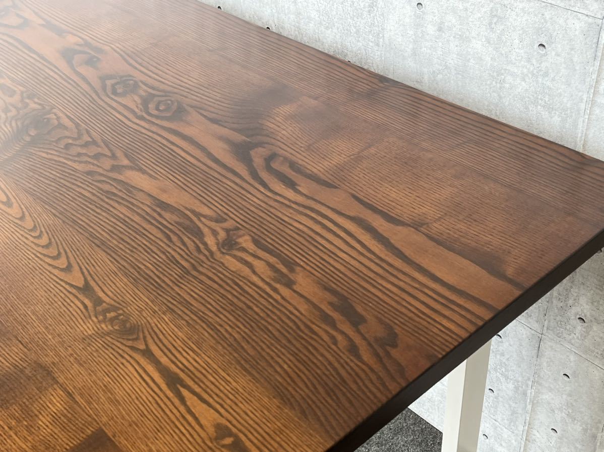 タモ集成無垢材のテーブルの出品です、アイアン脚付き