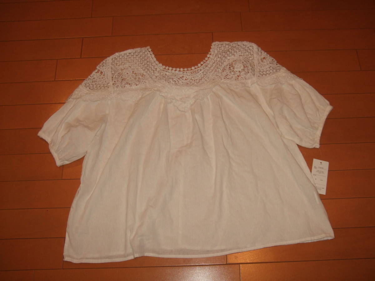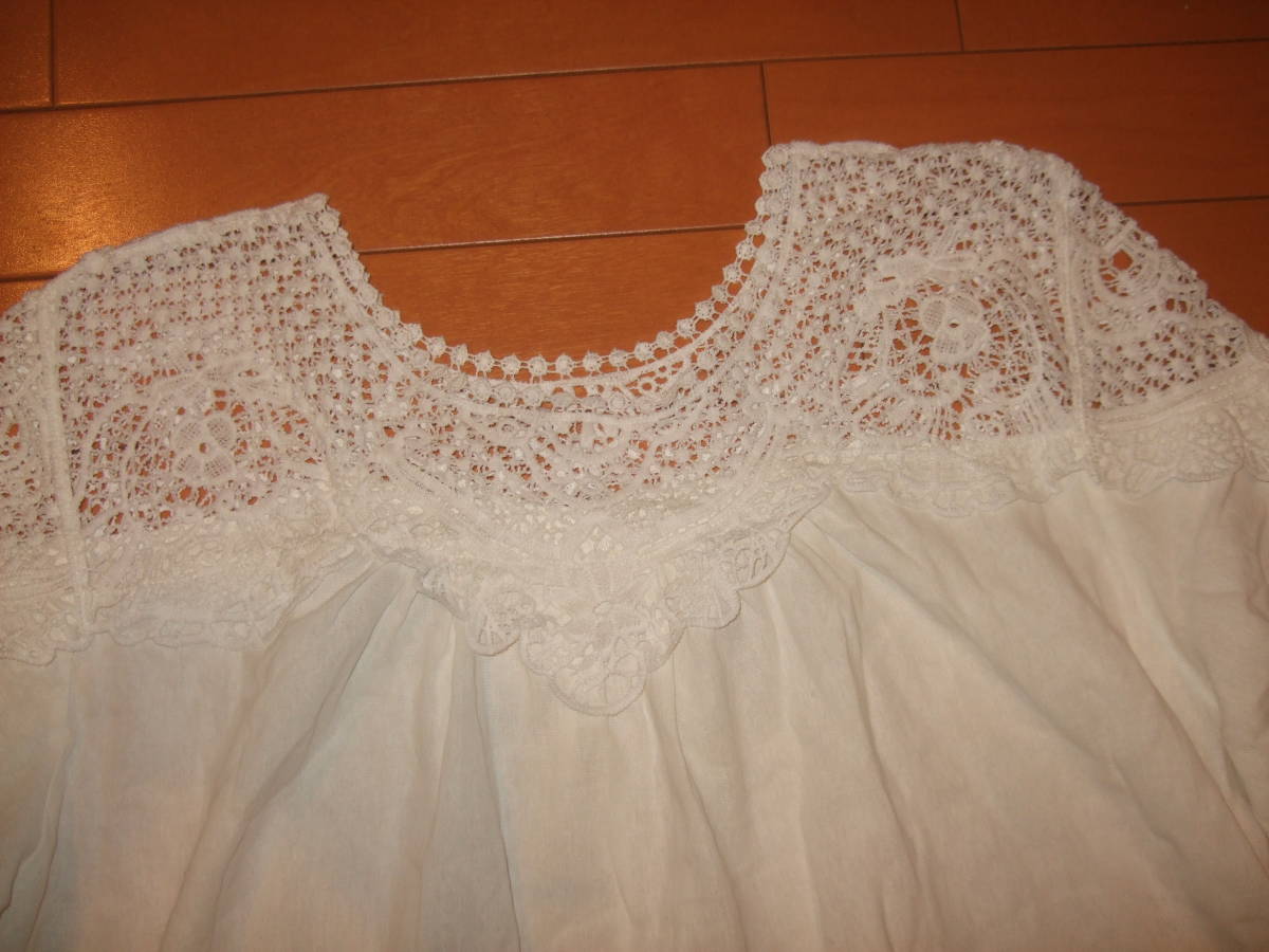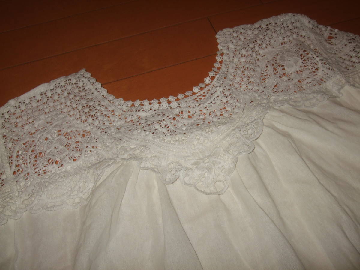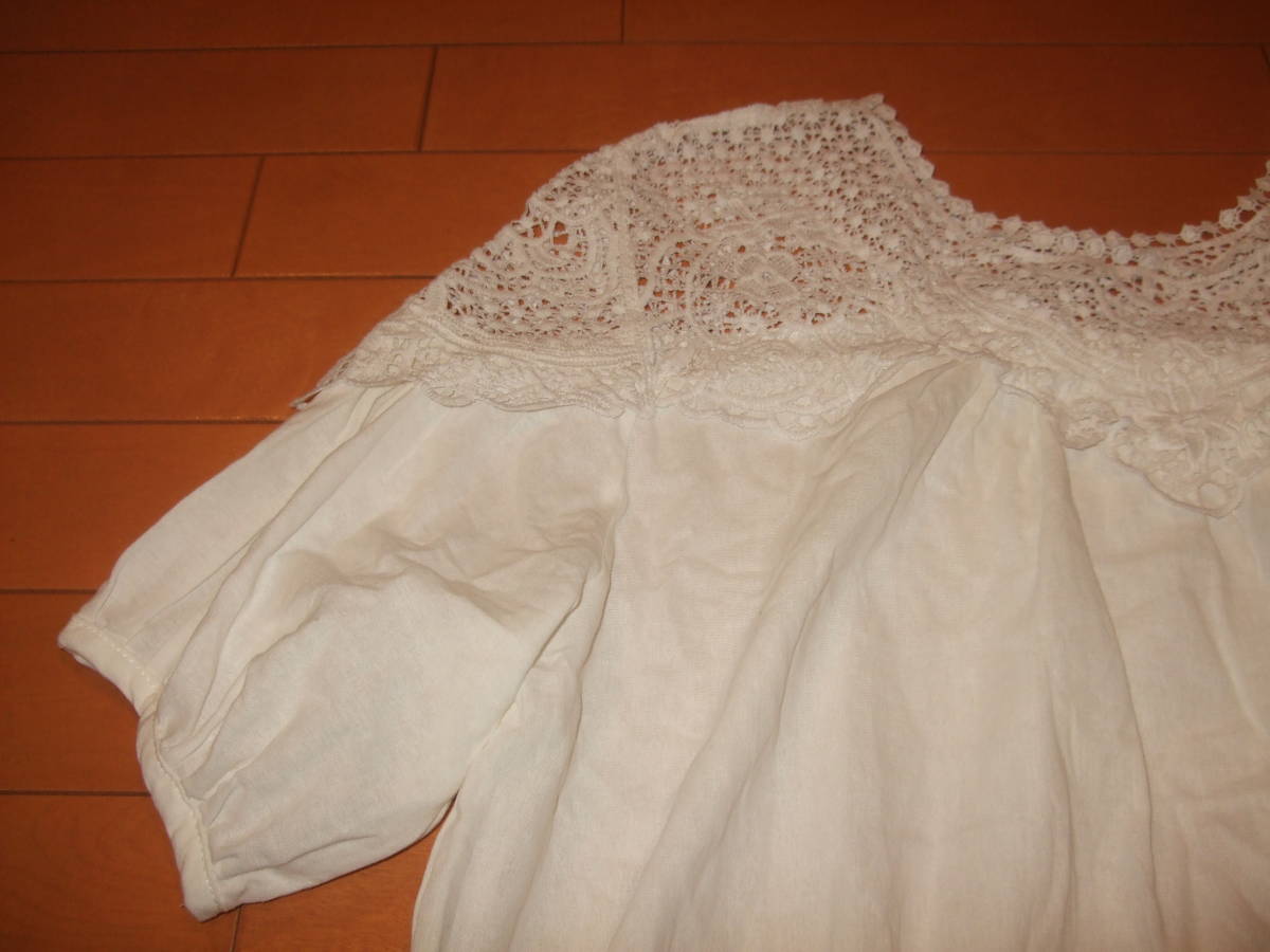 肩周りのレースがとても華やかで豪華なトップスです。コットン素材(カットソー生地ではありません)で、アクセサリーなしでも、