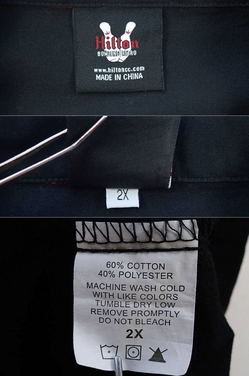 4727/美品Hilton 半袖ボーリングシャツ 2X●洗濯プレス済●ネコポス可●刺繍プリント フィフティーズスタイルロカビリーロックンロール古着