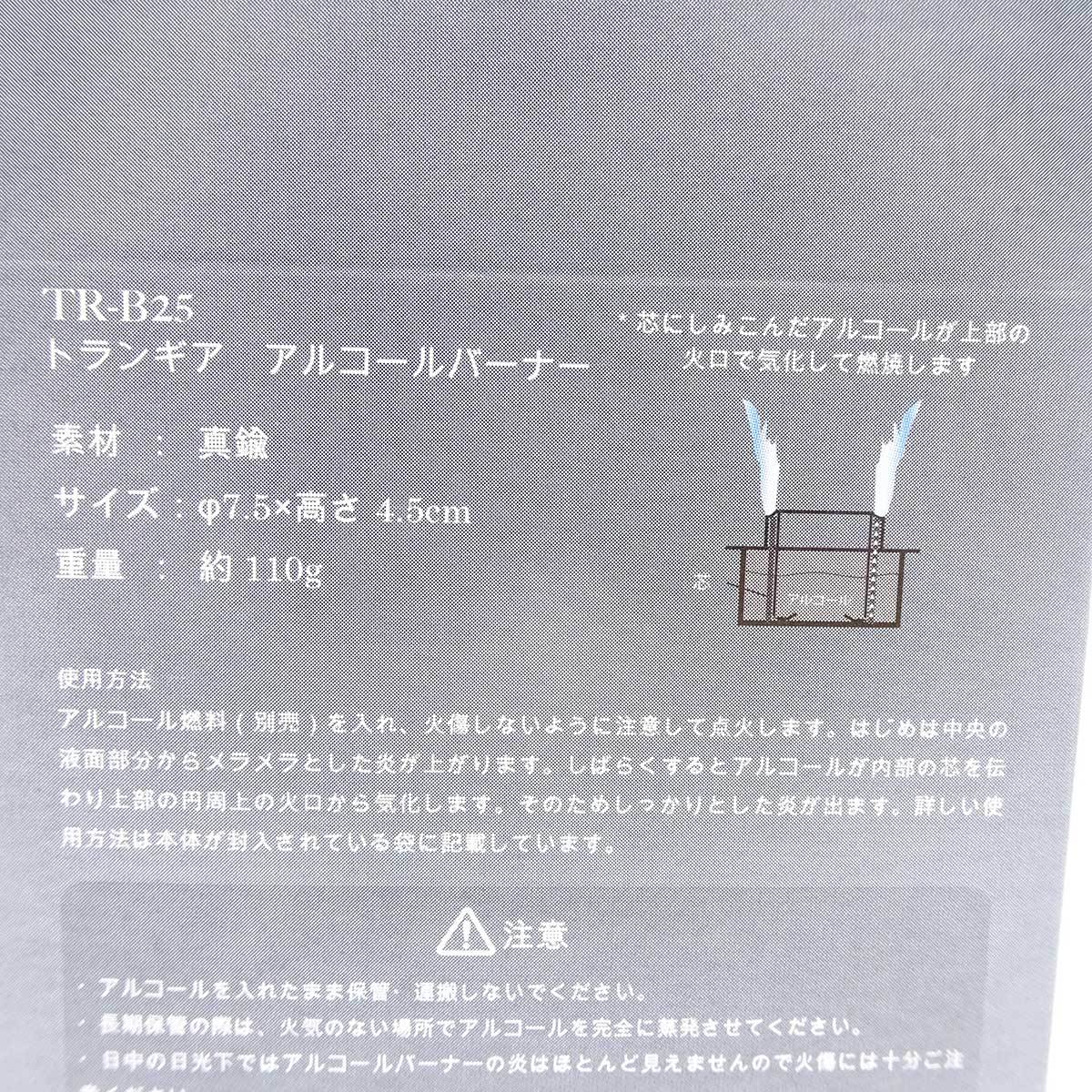 【中古・未使用品】トランギア アルコールバーナー スピリットバーナー [プリヒーター(TR-FV21)付] TR-B25 trangia アウトドア キャンプ