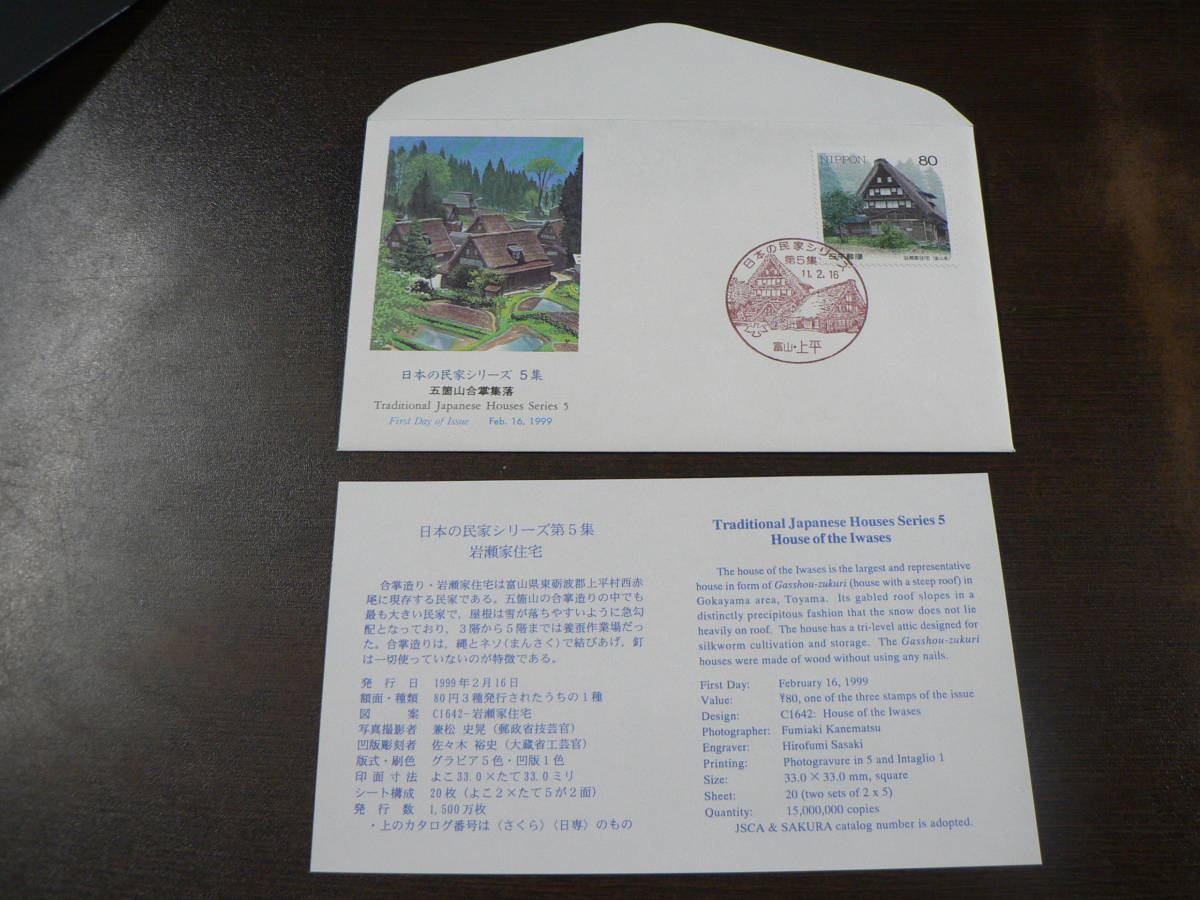 初日カバー 日本の民家シリーズ 5集 五箇山合掌集落 1999.2.16