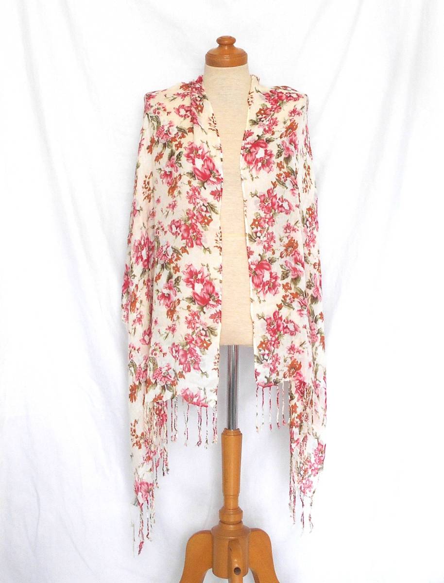 ホワイトカラーに赤い花柄が上品で品と華やかさのある素敵な1枚です。 | ||
