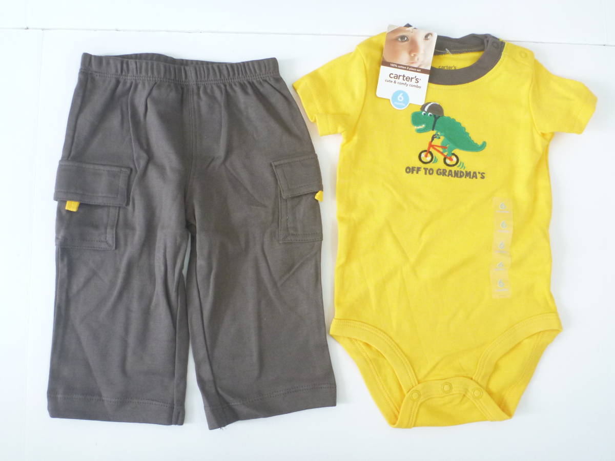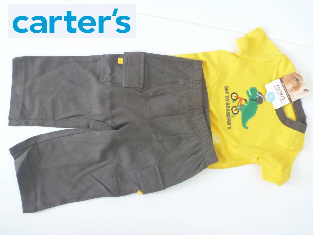 新品carter's カーターズ ★黄色×怪獣アップリケ 茶パンツ 半袖Tシャツ 6m…身長60㎝