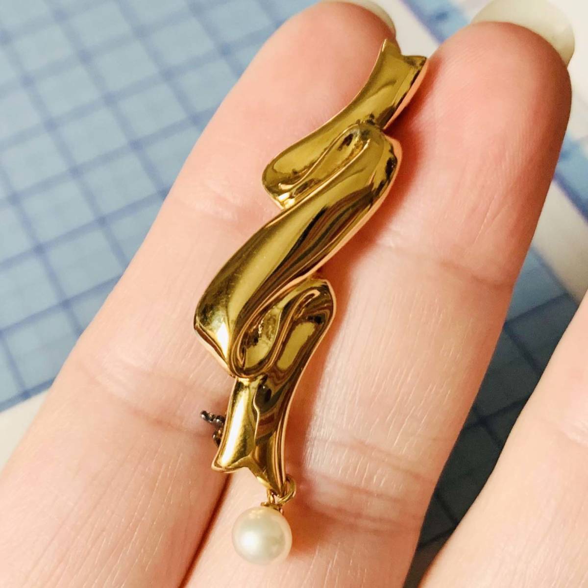 美品 天然本真珠 アコヤパール ゴールド ブローチ NO.S429