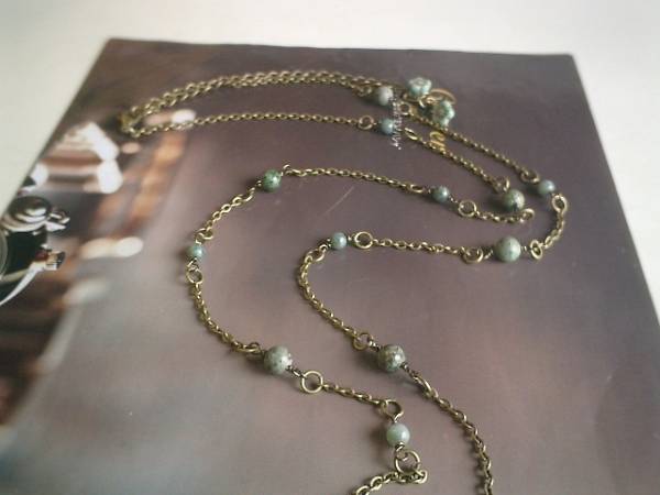 ロマンチックを集めて・・シリーズです♪シックなターコイズのネックレスです♪丸玉のターコイズをランダムに繋いで可憐な表情です♪4ミリと6ミリのターコイズの丸玉をランダムに繋いでいます♪シンプルで合わせやすいデザインです♪長さは82センチ+アジャスター12センチで最長100センチ位です♪お揃いのネックレスやブレスレットも出品しています♪シンプルで飽きのこないいつまでも着けられるデザインを考えて作りました!ハンドメイドをご理解頂いてノークレーム、ノーリターンでお願いします
