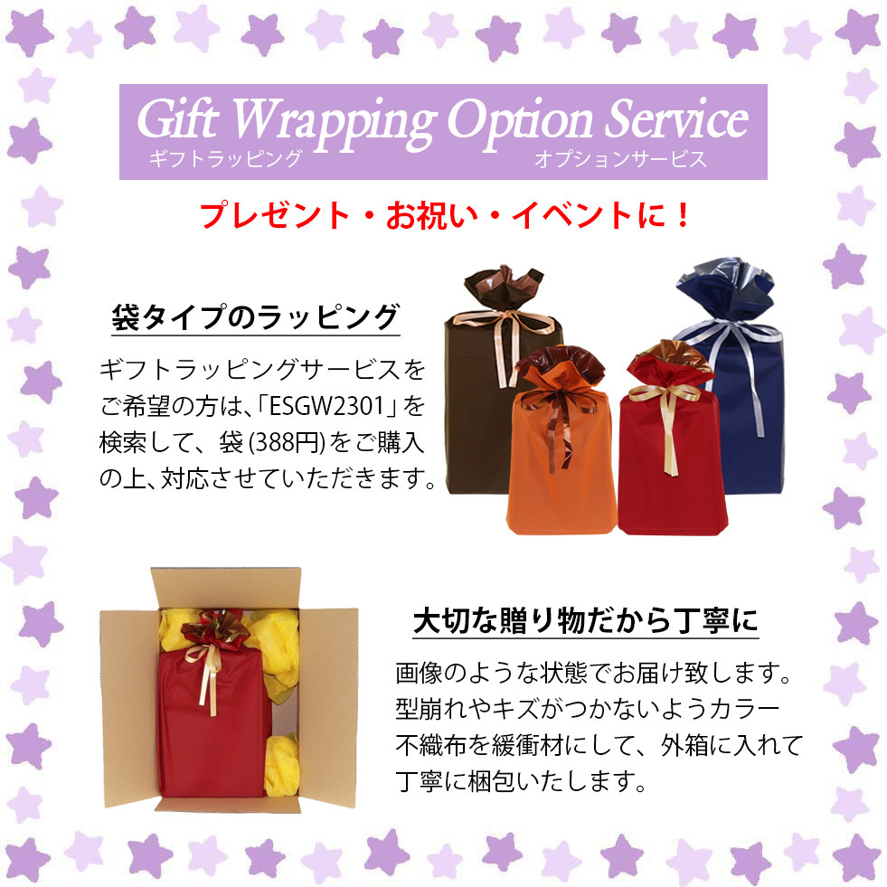 当アカウントの靴と一緒にご購入の方は、ギフトラッピングをご希望の場合、1枚入りの袋(品番:ESGW2301)をご購入の上、靴のギフトラッピングにも対応させていただきます。靴1足につき、袋1枚で丁寧に梱包致します。