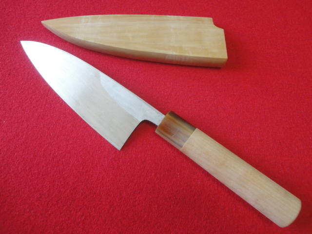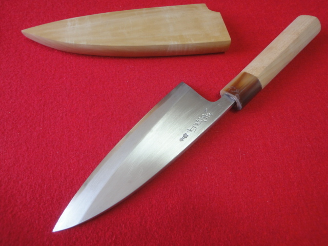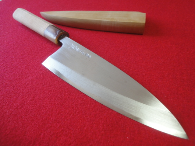 【近茶流】出刃包丁 刃渡15.3㎝ 全長29.8㎝ 峰厚7.5mm ※鞘付 ※片刃 中古品 全国一律送料1100円