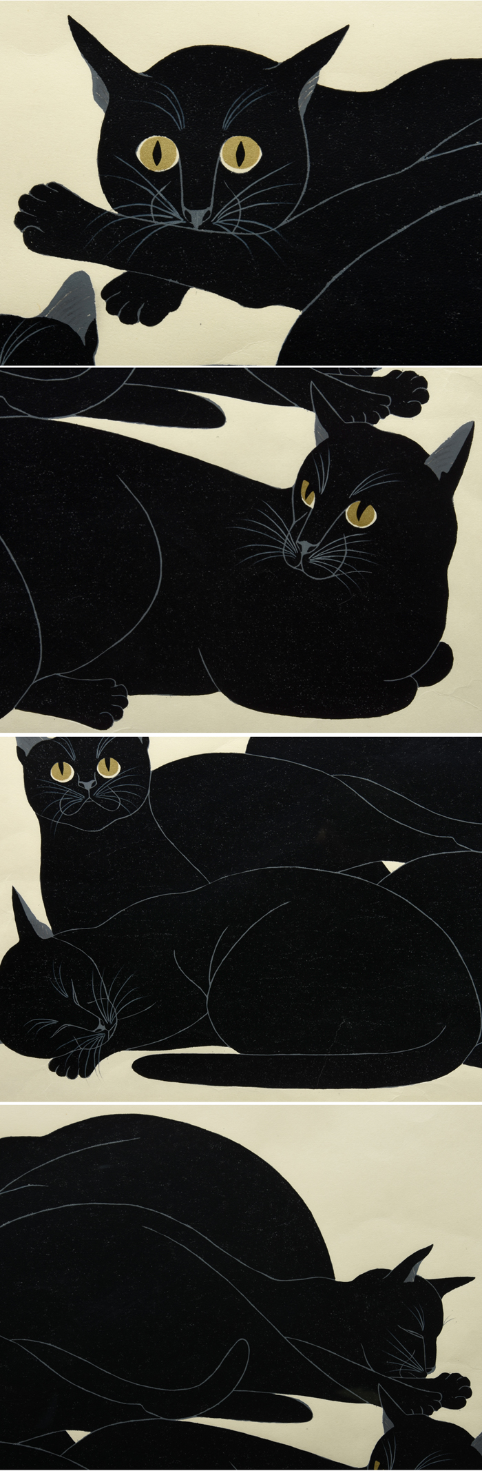 【真作】西田忠重(造)「Fellows」黒猫 木版画 版画 サインあり 51/120 額装 約75×57㎝ |