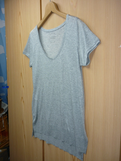 ◆デザイン・・深Vネックで後ろの着丈4㎝ほど長いデザインです。サラサラした肌触りでカットぽい生地です。