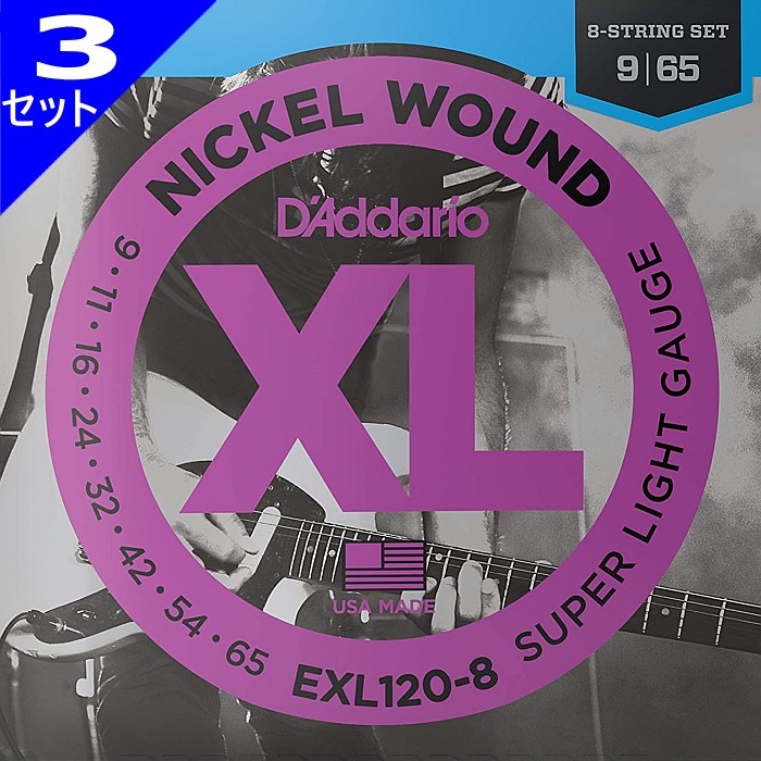 3セット 8弦用 D'Addario EXL120-8 Nickel Wound 009-065 ダダリオ エレキギター弦