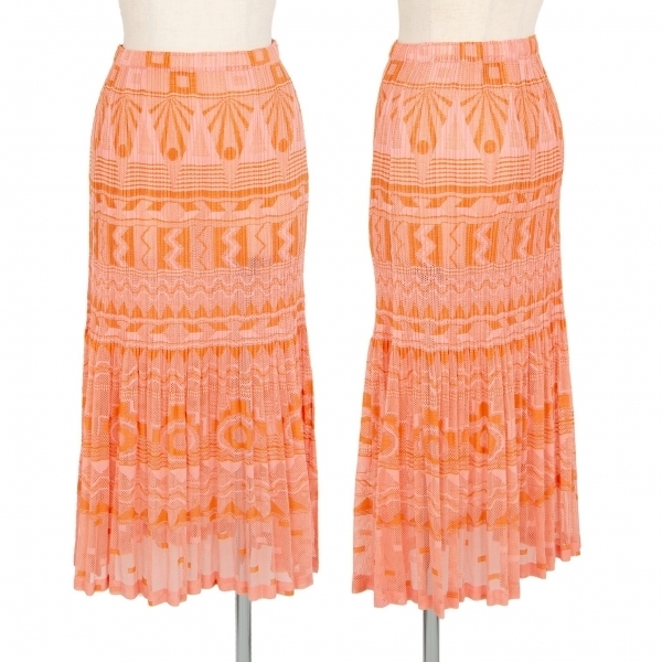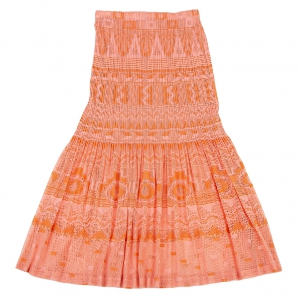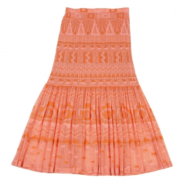 | プリーツプリーズPLEATS PLEASE 幾何学ジャガードメッシュスカート ピンク2 |