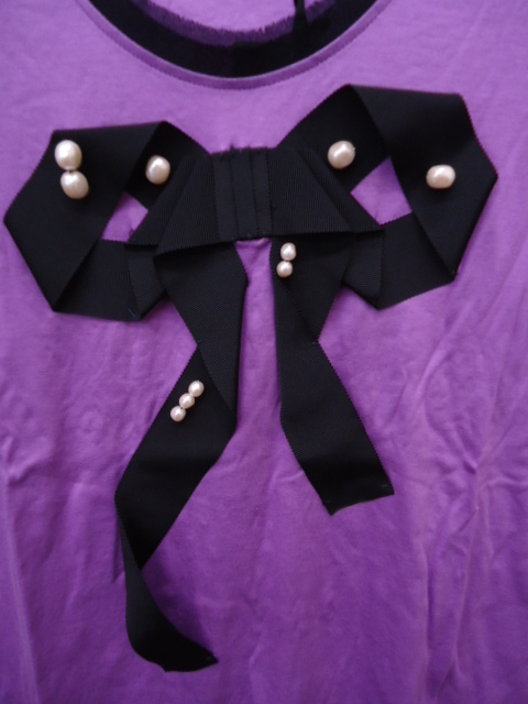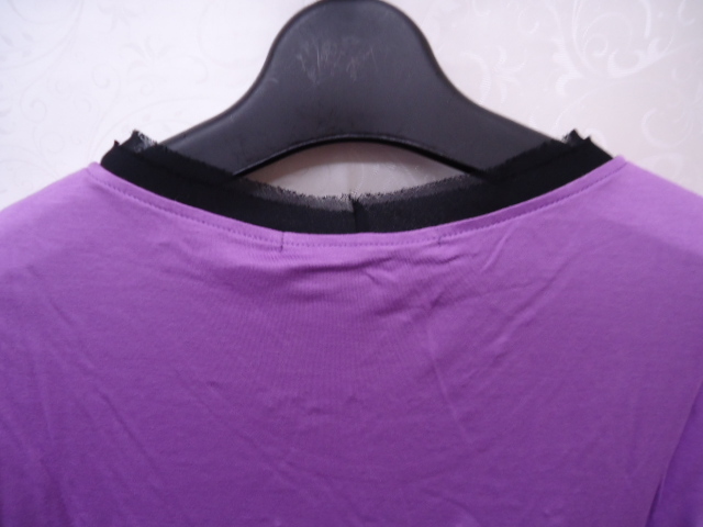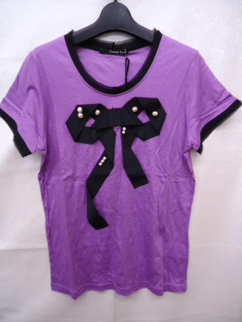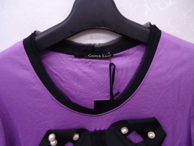 【KCM】kof-334★新品★【Coomb Luxe/クームリュクス】テープリボン装飾 半袖Tシャツ パープル系 サイズ 42 レディース