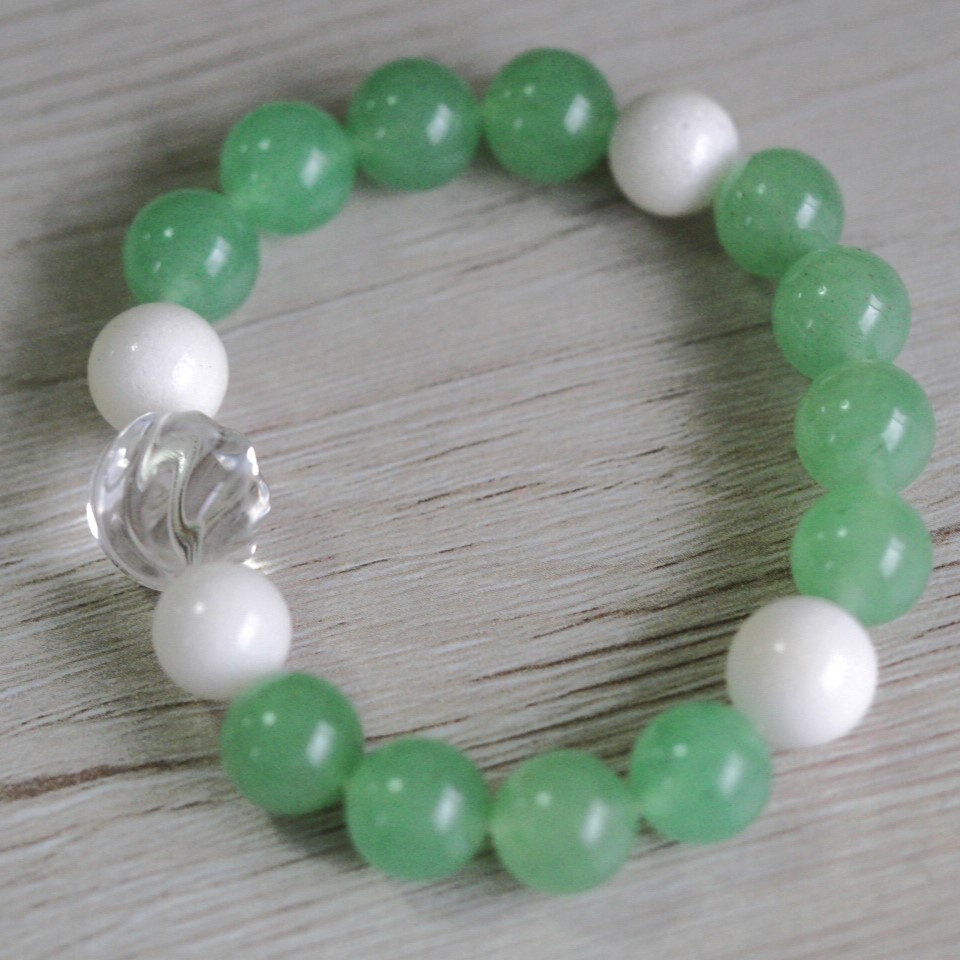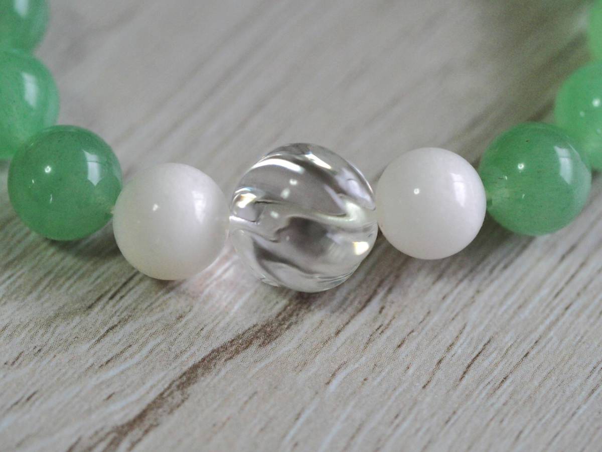 透明度高い水晶、ホワイトクオーツに柔らかいグリーンのインド翡翠と組合わせは、