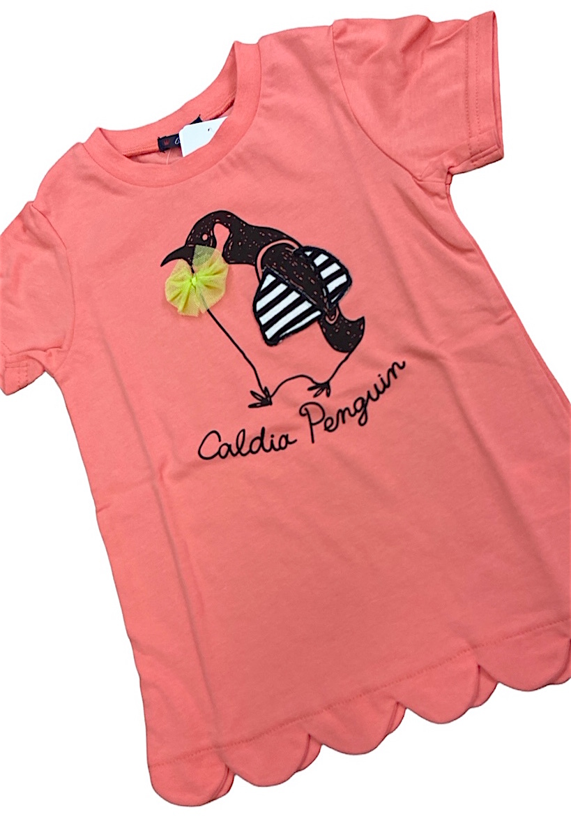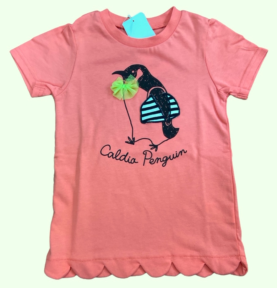 即決 新品タグ付 Caldia カルディア★バッグを持ったペンギン 裾スカラップ 天竺 半袖Tシャツ/or★110cm 5-6歳目安 ¥2090