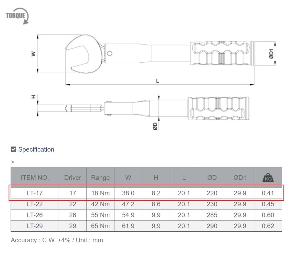 トルクレンチ(オープンエンド)17㎜ 18Nm (LT-17 18mm)