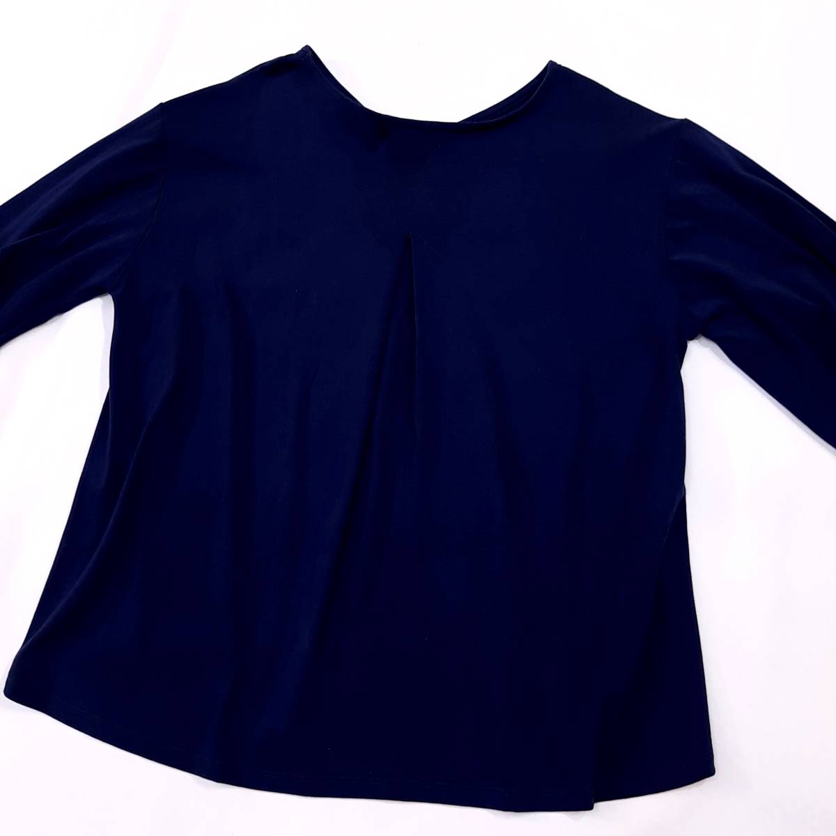 y3★EASEBLUE★送料無料★オフネック ゆったり7分袖カットソー★フリーサイズ ストレッチ生地 ネイビー紺色 Tシャツ 無地シンプル