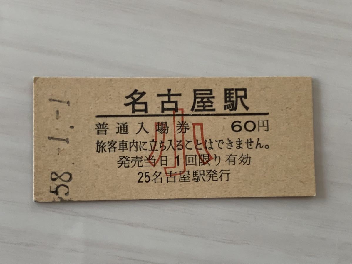 こちらは古い切符 名古屋駅 普通入場券 小 昭和58年1月1日 硬券です。