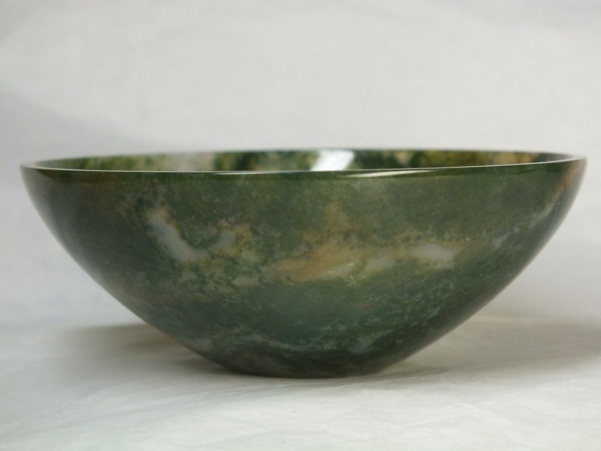 ▲商品説明▲ | 口直径:76mm 高さ:28mm フチ厚さ:約2mm 重さ:46.7g 当品は美しい緑系で透明感の有る氷種瑪瑙です。更に玉中にまるで水草の様な神秘的景色が現われた大変珍しい逸品です。これで一杯やるも良し、そのまま飾っても、小物入れにしても楽しいです。 ※沸騰した酒などを急激に注ぎますと割れることがあります。御注意下さい。 |