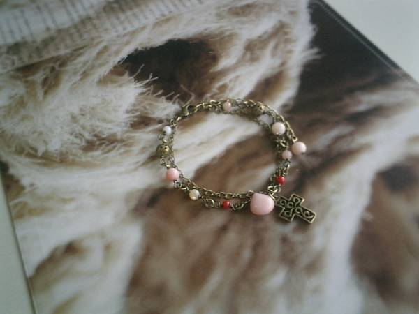やさしい時間・・シリーズです♪アンニュイなピンク・・シックなピンクオパールの2連のブレスレットです♪ベージュピンクのピンクオパールに赤珊瑚やマザーオブパールや透かしボールやクロスを合わせてアンニュイな表情です♪ピンクオパールは4ミリ、6ミリの丸玉、10×8ミリのフラットマロンです♪赤珊瑚は3ミリの丸玉、マザーオブパールは4ミリの丸玉です♪長さは16センチ+アジャスター7センチで最長23センチ位です♪♪お揃いのネックレスやピアスも出品しています♪シンプルで飽きのこないいつまでも着けられるデザインを考えて作りました!ハンドメイドをご理解頂いてノークレーム、ノーリターンでお願いします