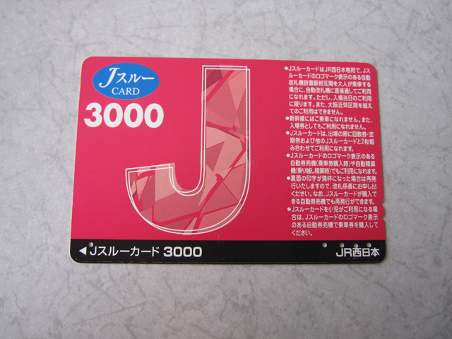 【使用済 Jスルーカード】 Jの文字  JR西日本