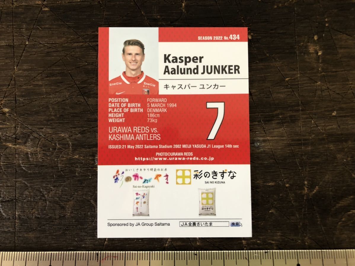 2022年5月21日 J1リーグ第14節 浦和レッズ vs 鹿島アントラーズ 埼玉スタジアム2○○2で配られたカードです(非売品)。Kasper Aalund Junker キャスパー・ユンカー