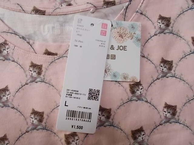新品 UNIQLO ユニクロ PAUL & JOE ポール&ジョー  UTグラフィックTシャツ 猫総柄 ピンク レディース Lサイズ