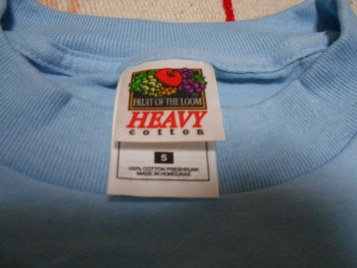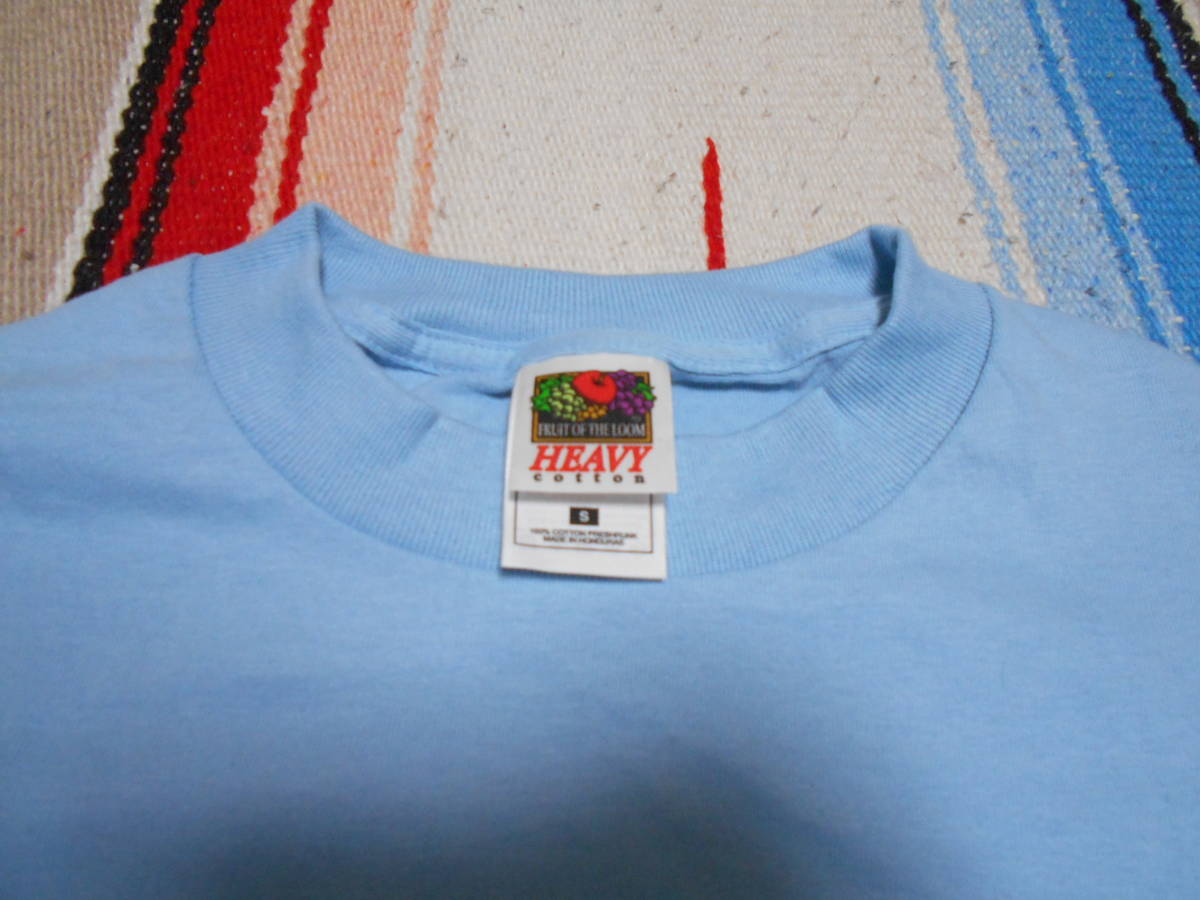 ビンテージ オリジナル FRUIT OF THE LOOM 「HEAVY COTTON」 特有の良質なコットン100%素材感、タイト目なボディーとスリーブシルエット、派手過ぎないスカイブルーアッシュの発色   等等...ディテールまでとても良い風合
