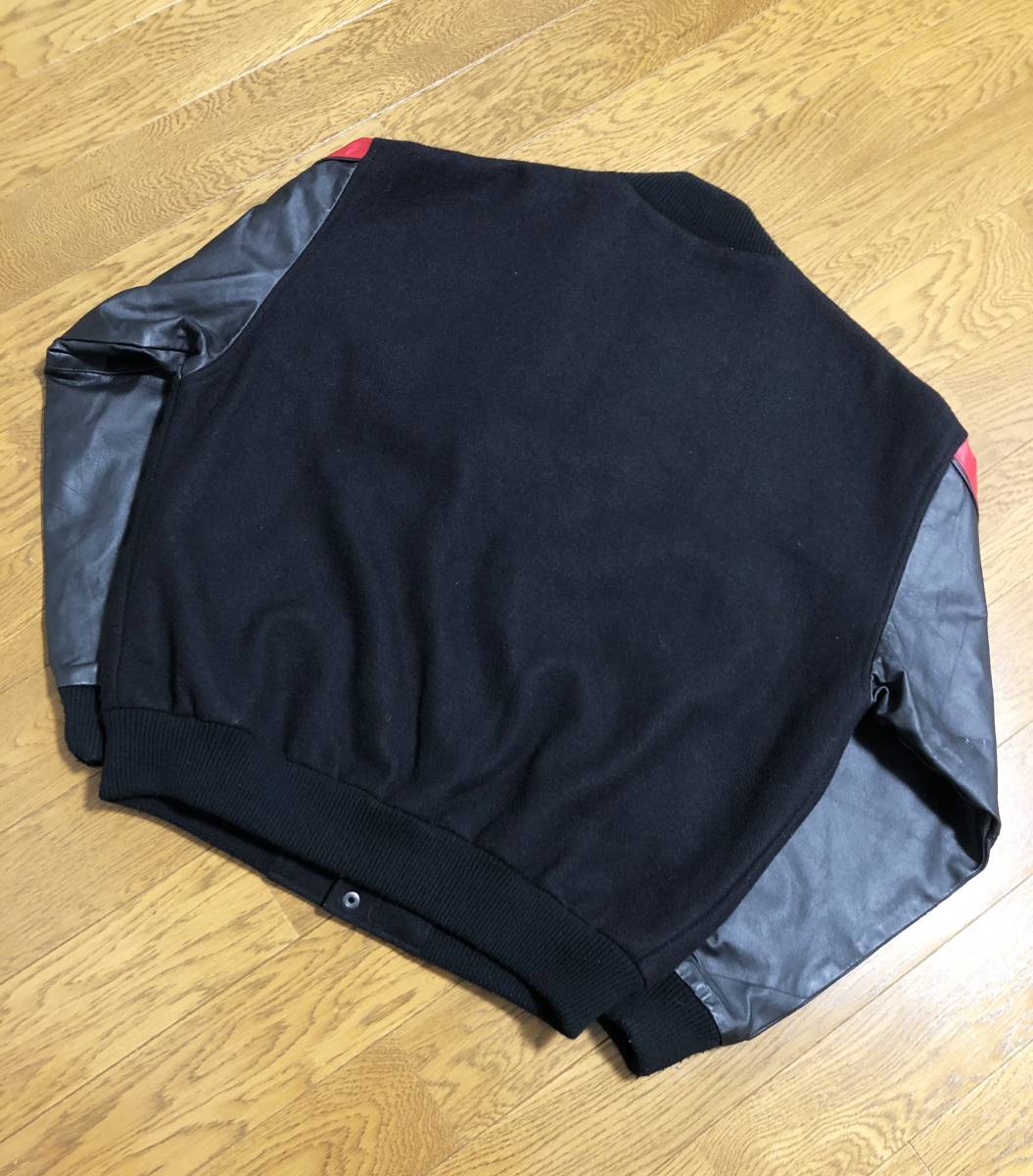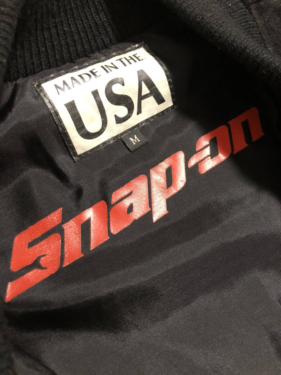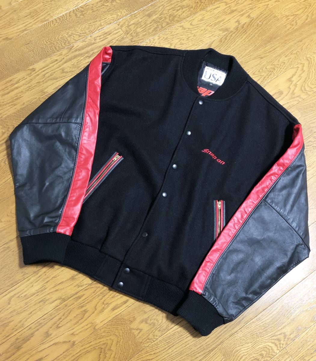 美品☆[SNAP-ON] カラー切替 袖レザー ウールスタジャン M USA製 本革 ブラック レッド スナップオン