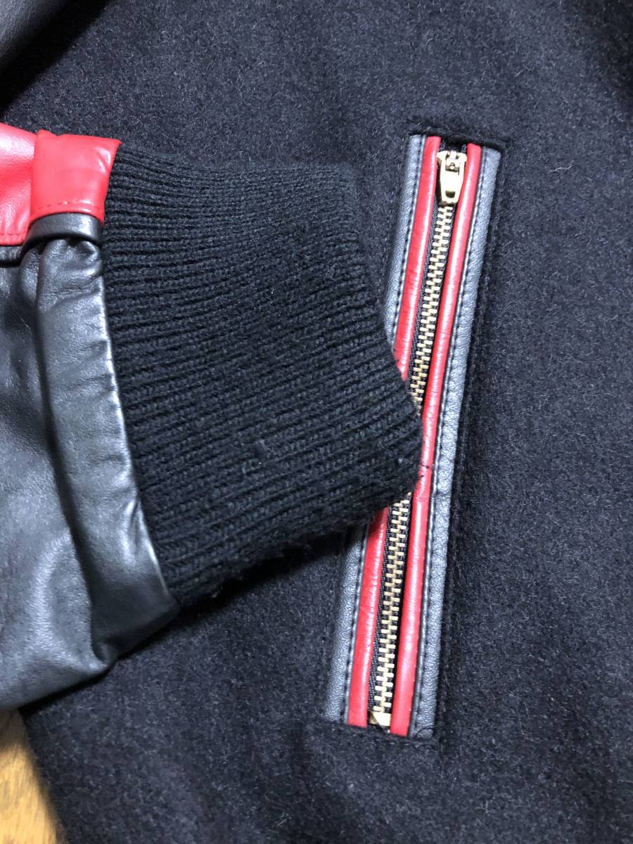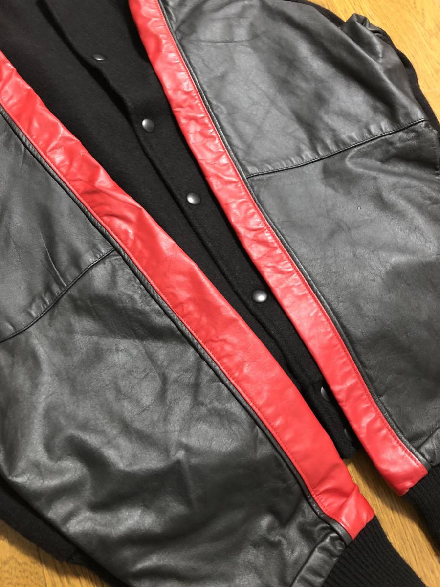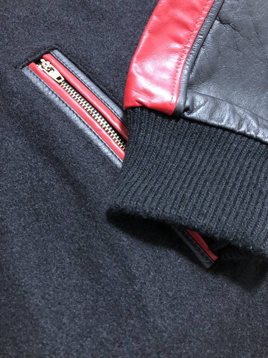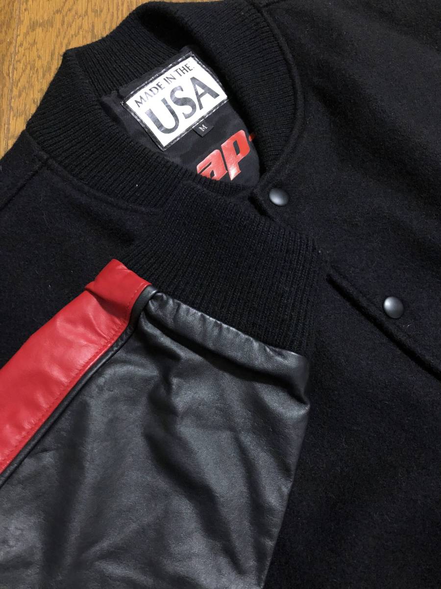 美品☆[SNAP-ON] カラー切替 袖レザー ウールスタジャン M USA製 本革 ブラック レッド スナップオン
