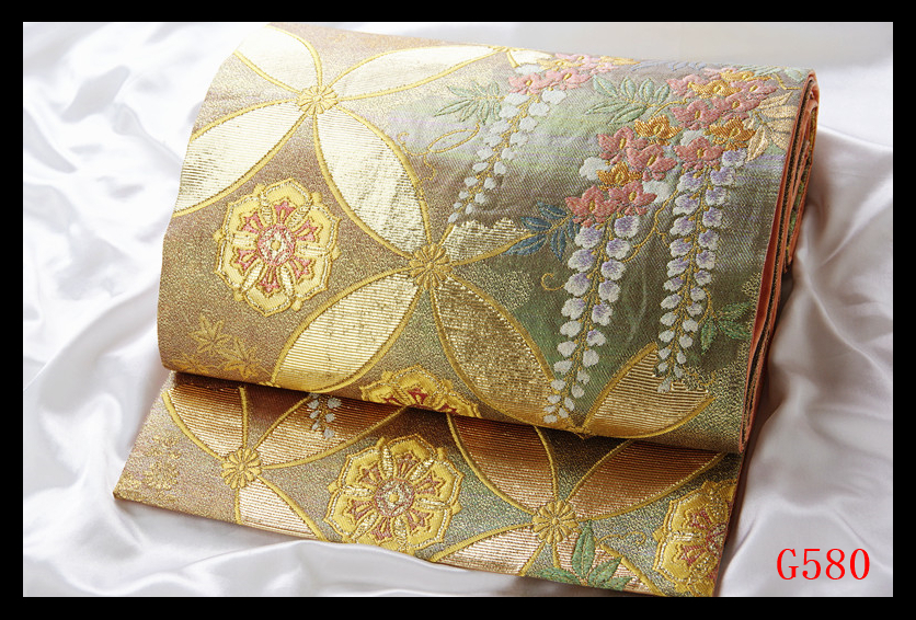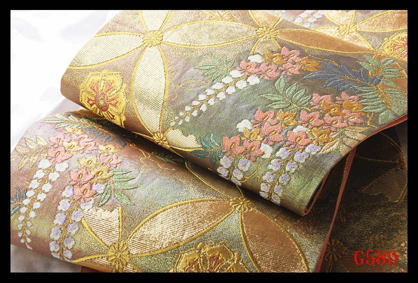 【G580】厳選西陣 振袖可 七宝藤吉祥紋 暈し 淑やかに香る気品 正絹純金糸六通高級美術袋帯 ◇検◇簪着物名古屋帯帯締め