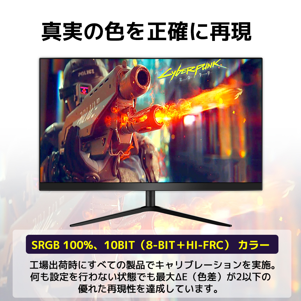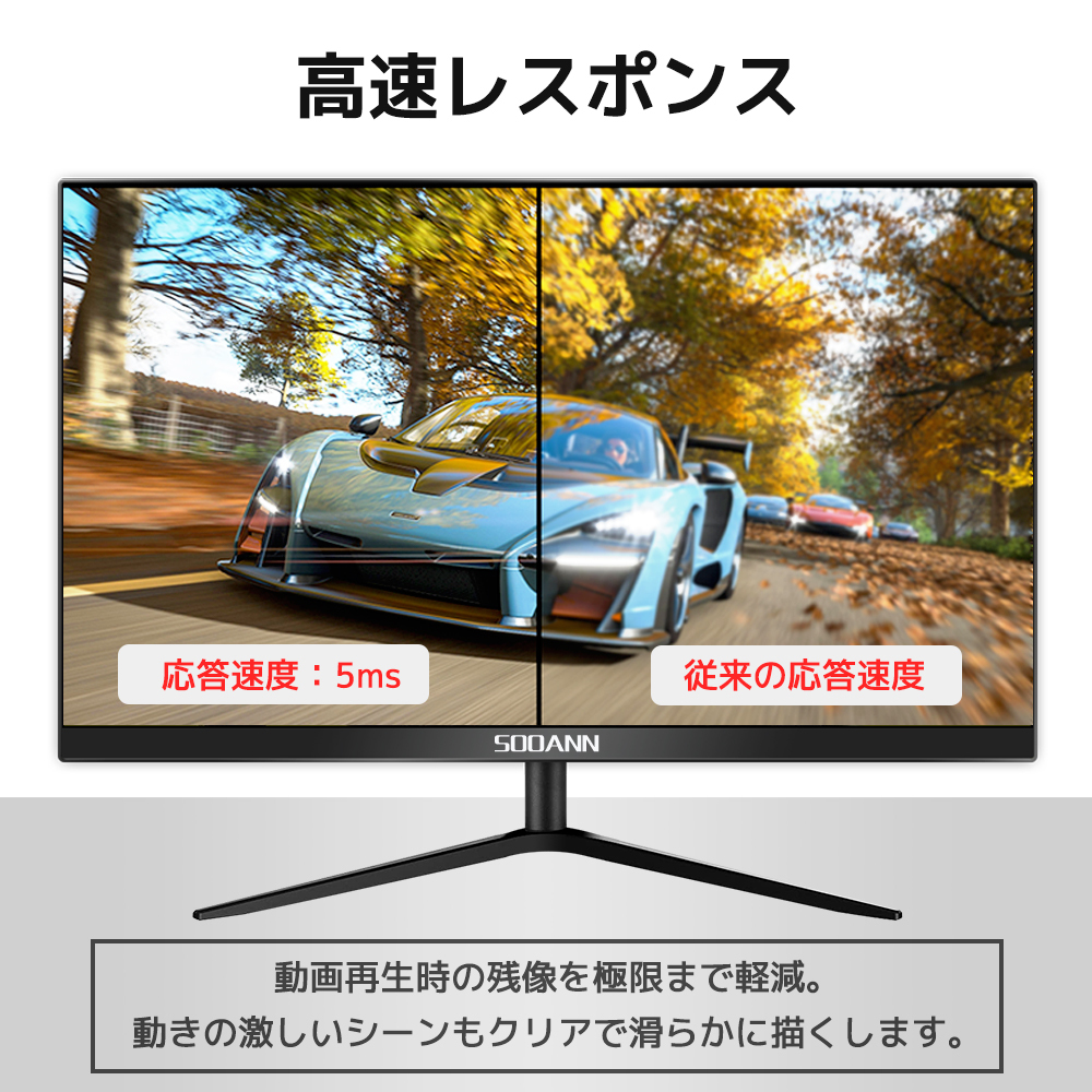 フルHD(1920x1080)解像度とLEDバックライト 薄型IPSパネルを採用しており 、178度の広視野角を備え、水平面と垂直面の色ムラが最小限に抑えられています。どこから見ても鮮明な美しい画像や映像を表示できます。