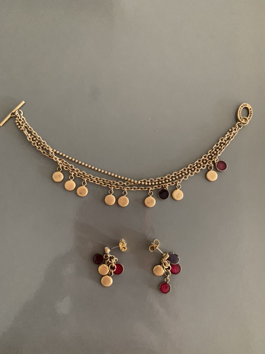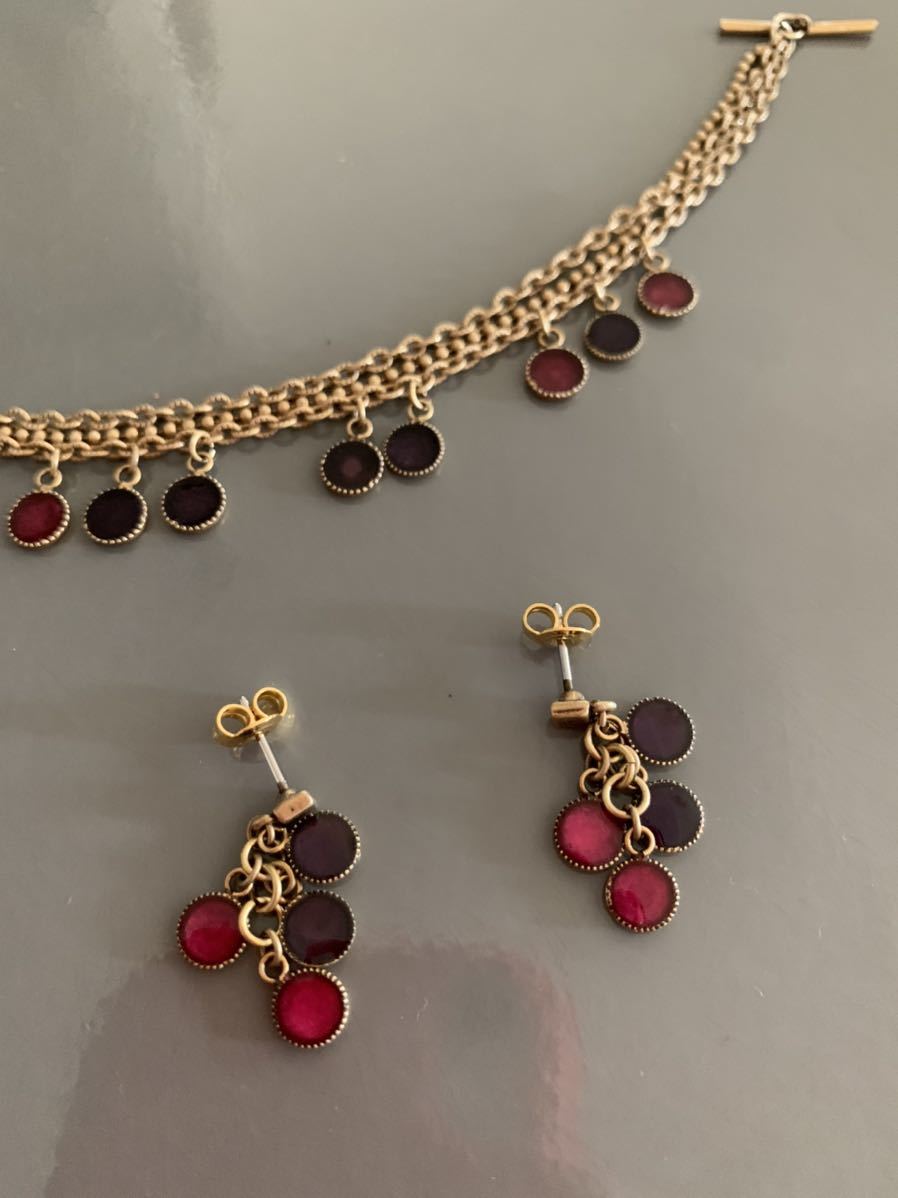 コスターリングのピアスのブレスレットのセットです。ピンクとパープルに透け感があってきれいです。