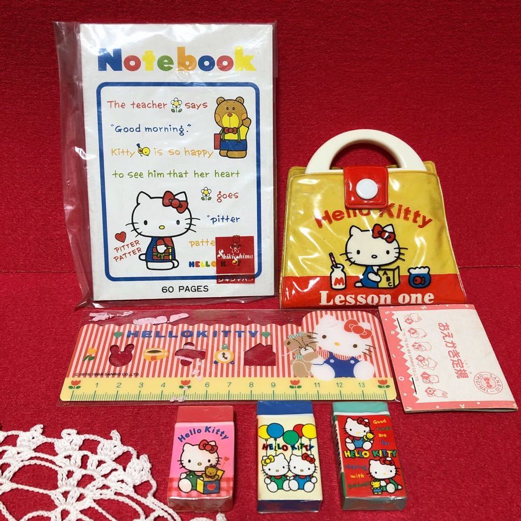 キティ◇ハローキティ◇6点セット◇ノート ミラーコーム 消しゴム 定規◇昭和 レトロ 当時物 旧ロゴ◇サンリオ