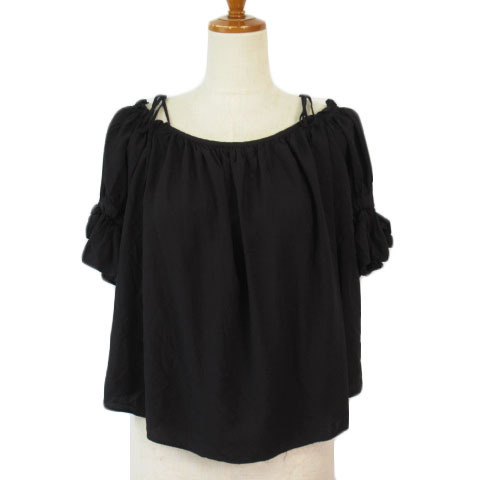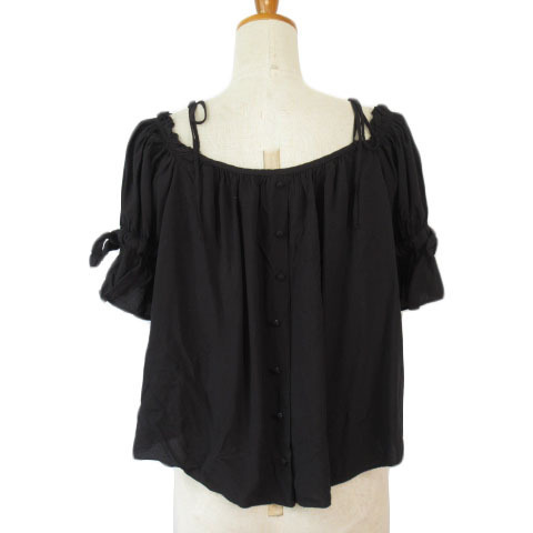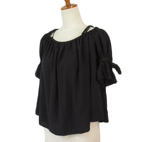 ナイスクラップ NICE CLAUP カットソー ブラウス オフショル リボン 五分袖 F 黒 ブラック レディース