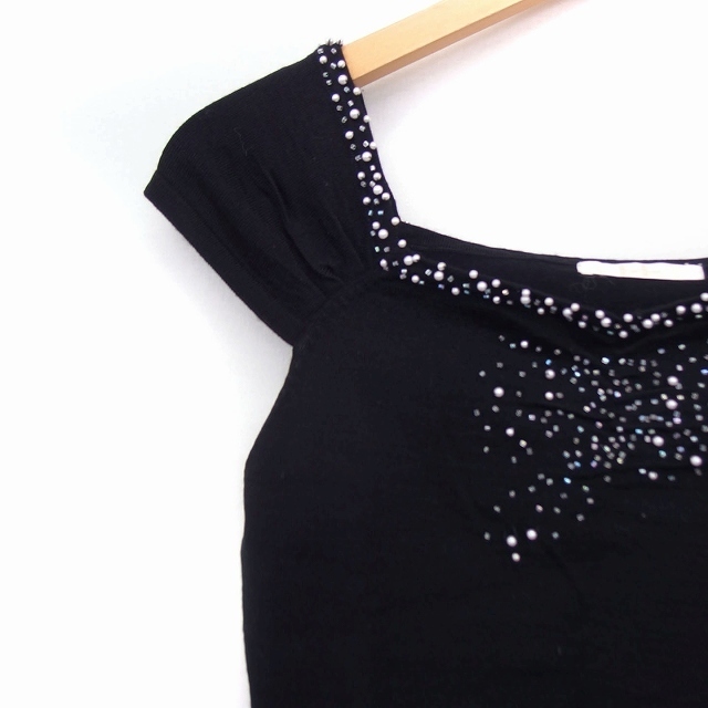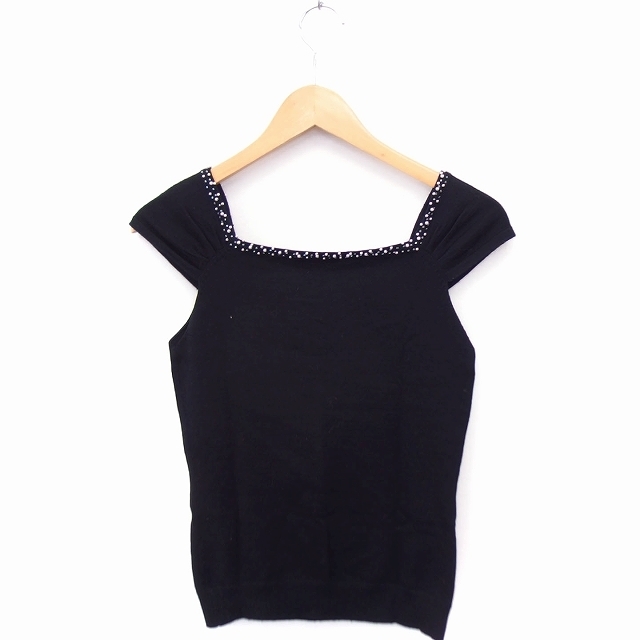 Angel Rose ニット セーター ビーズ装飾 スクエアネック ノースリーブ ウール M ブラック 黒 /FT24 レディース